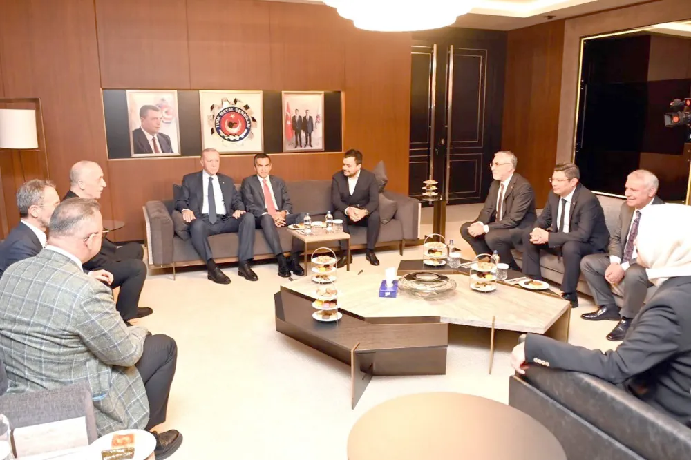 Cumhurbaşkanı Erdoğan’a, Başkan Altundağ’a ziyareti sırasında Çalışma ve Sosyal Güvenlik Bakanı Vedat Işıkhan’ın yanı sıra Türkiye Cumhuriyeti İletişim Başkanı Prof. Dr. Fahrettin Altun, AK Parti Sosyal Politikalar Başkanı Fatma Betül Sayan Kaya, TÜRK-İŞ Genel Başkanı Ergün Atalay ve TİSK Yönetim Kurulu Başkanı Özgür Burak Akkol eşlik etti.