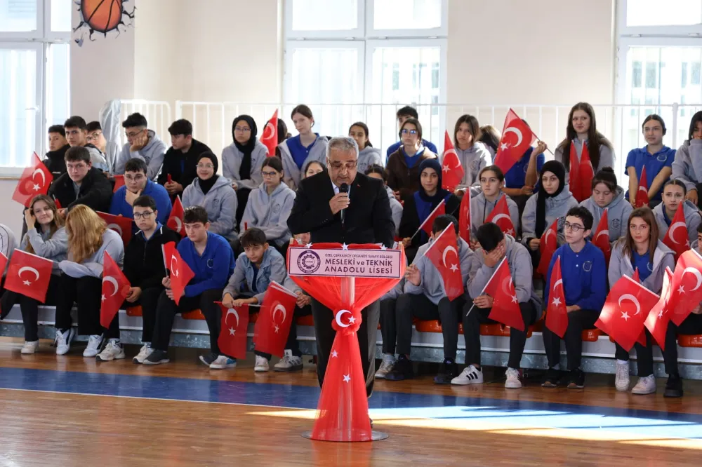 Program, Saygı Duruşu ve İstiklal Marşı’nın okunmasıyla başladı. Ardından Okul Müdürü Bekir Behçet Yazıcıoğlu, yaptığı konuşmada Cumhuriyet’in Türk milletine kazandırdığı değerleri vurgulayarak,