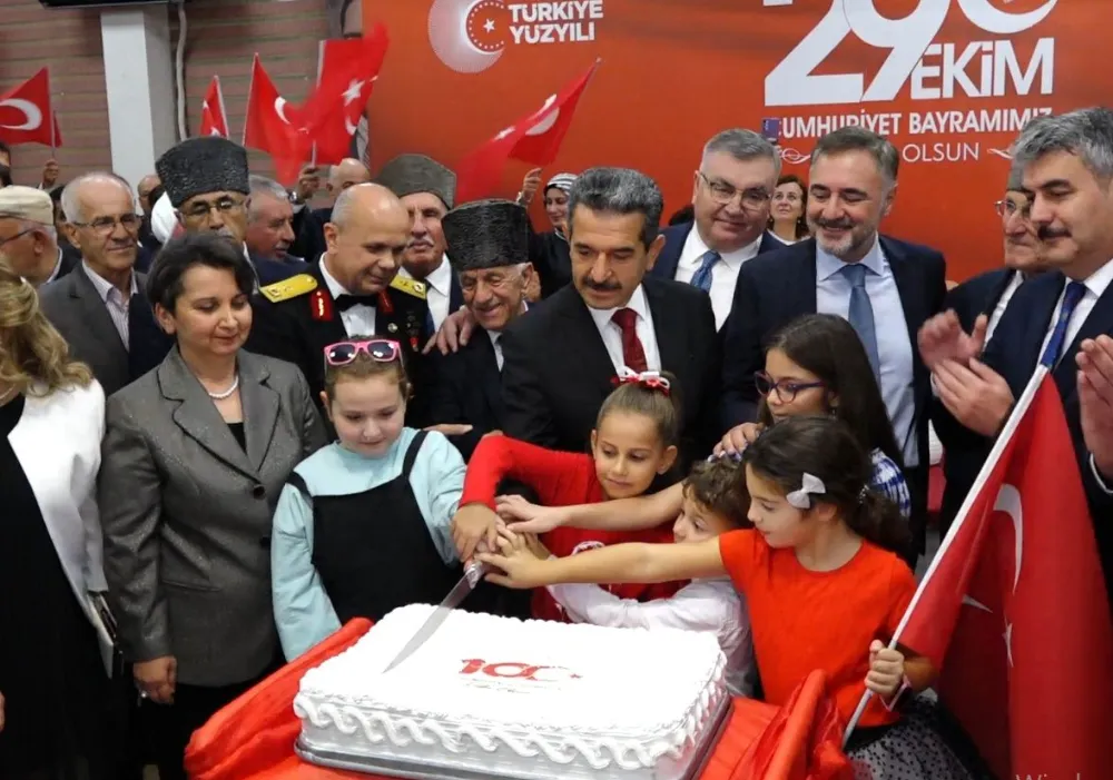 Cumhuriyet’in 100. yıl etkinlikleri çerçevesinde Kırklareli’nde Cumhuriyet Bayramı Kabul Töreni gerçekleşti. Halk Eğitim Merkezi’nde gerçekleşen kabul töreninde Vali Birol Ekici ve beraberindekiler kapıda misafirleri karşıladı. Törende konuşan Vali Ekici, 2. yüzyılın Türkiye Yüzyılı olacağını ifade ederek Cumhuriyet’in 100. yılını kutladı. Konuşmanın ardından 100. yıl pastası kesildi.