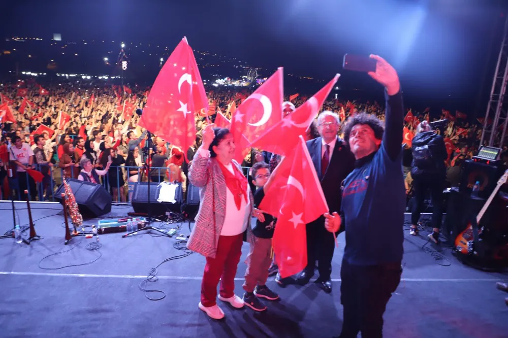 Program sırasında bir açıklama yaparak Cumhuriyetin önemine değinen Başkan Kadir Albayrak, “Bu büyük coşku ve heyecanı bizlerle paylaşan tüm hemşehrilerime şükranlarımı sunar, bu eşsiz geceyi bizlere yaşatan Pinhani grubuna teşekkür ederim. Vatan sevgisi ve bağımsızlık ruhu içerisinde, Cumhuriyet’in onurlu bireyleri olmanın bilinciyle tarihimizden ilham alarak demokratik, çağdaş ve mutlu bir geleceği hep beraber inşa edeceğimize olan inancım tamdır. Bu duygu ve düşüncelerle, 29 Ekim Cumhuriyet Bayramımızı ve Türkiye Cumhuriyetimizin 100. kuruluş yıl dönümünü kutluyor, başta Ebedi Önderimiz Mustafa Kemal olmak üzere İstiklal Mücadelemizin tüm kahramanlarını; aziz şehitlerimizi ve kahraman gazilerimizi rahmet, şükran ve saygıyla anıyorum” dedi.