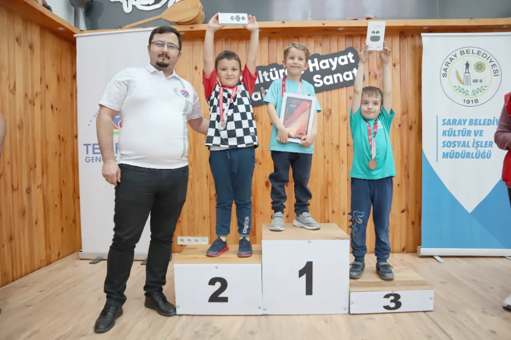 ‘Yüzyılın en güzel hamlesidir Cumhuriyet’ konulu satranç turnuvasında 8 yaş ve altı kategorisinde dereceye girenlere Türkiye Satranç Federasyonu Başhekimi Selçuk Ertaş, 10 yaş ve altı kategorisinde dereceye girenlere Saray Gençlik ve Spor İlçe Müdürlüğü Spor Uzmanı Mehmet Arslan ve açık kategoride dereceye girenlere Saray Belediyesi Kültür ve Sosyal İşler Müdürü Arif Naci Öngören tarafından ödülleri takdim edildi.