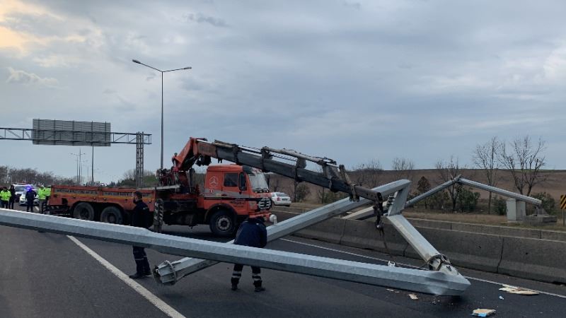 Tekirdağ Çorlu'da seyir halindeyken damperi açıldığı öne sürülen kamyon, Kent Güvenlik Yönetim Sistemi (KGYS) kamerası direğine çarparak devrilmesine neden oldu. Kaza nedeniyle trafikte aksama yaşanırken, yaklaşık 2 saat kadar Çorlu istikametine trafik akışı farklı bir güzergahtan verildi.