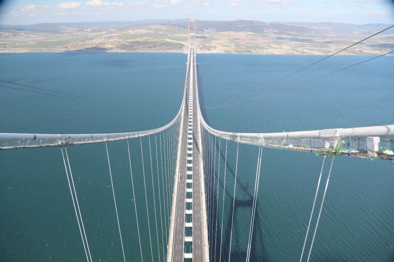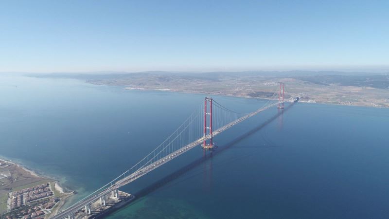 “1915 Çanakkale Köprüsü 2 bin 23 metre orta açıklık, 770’er metre yan açıklıklar ile beraber 3 bin 563 metre uzunluğunda. 2 bin 23 metrelik orta açıklık Cumhuriyet’imizin 100. kuruluş yıl dönümünü sembolize edecek ve ‘dünyanın en büyük orta açıklıklı asma köprüsü’ unvanına sahip olacak. 365 ve 680 metrelik yaklaşım viyadükleri ile beraber toplam geçiş uzunluğu ise 4 bin 608 metreye ulaşmaktadır. Köprümüzün 318 metrelik çelik kuleleri Çanakkale Deniz Zaferi’nin kazanıldığı 18 Mart 1915’i işaret edecek. İki çelik kule arasındaki Köprümüz, dünyada ikiz tabliye olarak tasarlanan nadir asma köprülerden biri olma özelliğine de sahip. Dünyada 2 bin metre orta açıklığın üzerinde ikiz tabliye olarak dizayn ve inşa edilen ilk köprü olarak tarihe geçecek. 318 metrelik kule yüksekliği ve 16 metrelik mimari amaçlı top mermisi figürüyle birlikte düşünüldüğünde deniz seviyesinden 334 metre yüksekliğe erişecek ve dünyanın en yüksek kulelerine sahip asma köprüsü olacak. Malkara-Çanakkale Otoyolu da güzergahı 40 kilometre kısaltacak.”