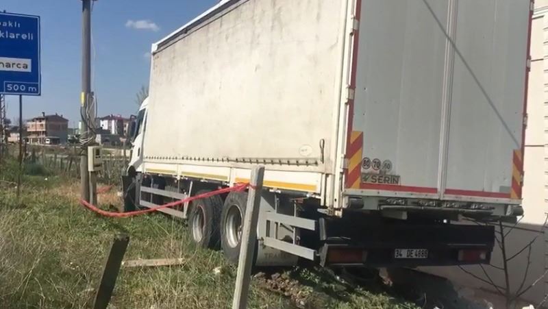 Kaza, Tekirdağ’ın Çerkezköy ilçesi Bağlık Mahallesi’nde meydana geldi. Edinilen bilgilere göre; İstanbul-Çerkezköy yolu üzerinde seyir halinde olan 34 DE 4886 plakalı H.G. (60) yönetimindeki tır, sürücüsünün direksiyon hakimiyetini kaybetmesi sonucu refüjden içeri girdi. Bir süre sürüklenen tır, daha sonra elektrik trafosu önünde durdu. Kazayı görenler durumu 112 Acil Sağlık ve polis ekiplerine bildirdi. İhbar üzerine olay yerine gelen sağlık ekipleri, yaralı sürücüyü olay yerinde yaptıkları ilk müdahalenin ardından Çerkezköy Devlet Hastanesi’ne kaldırdı.