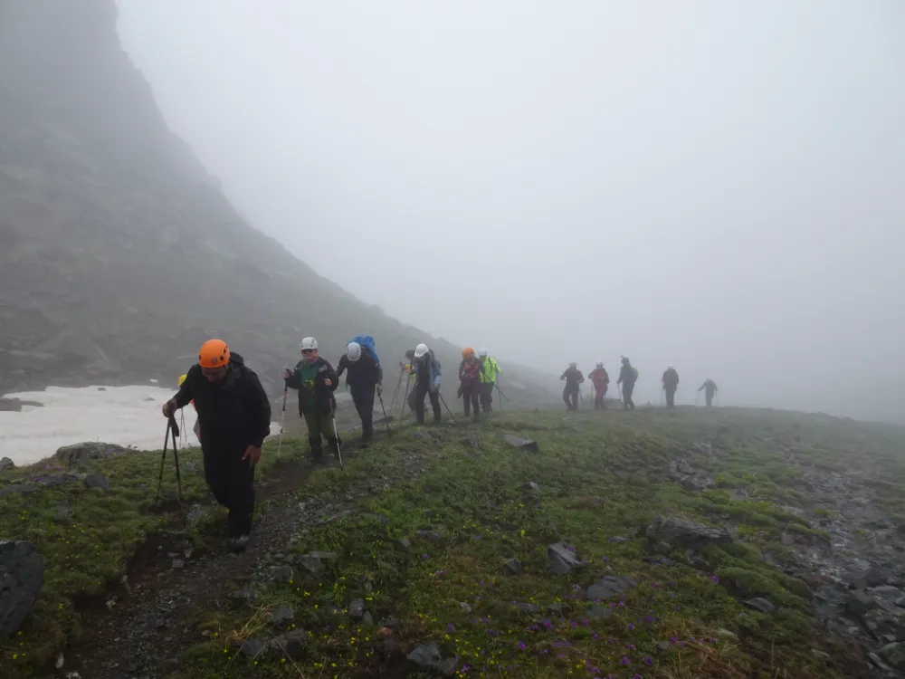 Trans-Kaçkar faaliyetinin yayla etapları, Olgunlar Yaylası ile başladı. Katılımcılar buradan kamp yükleriyle Dilberdüzü’ne ulaşarak Kaçkar’ın yüksek kesimlerine doğru ilerledi. Ertesi gün ulaşılan Deniz Gölü bölgesinde sisin yoğunlaşması üzerine ekip, zirveye çıkışın riskli olabileceğini değerlendirdi. Buna rağmen bazı ekip üyeleri, durumu yerinde görmek için 3 bin 720 metre yüksekliğe kadar tırmandı. Ancak yeni yağan kar, sis ve fırtına nedeniyle geri dönme kararı alındı. Aynı noktada bir gün önce zirve denemesi yapan Alman ekip de benzer şekilde geri çekilmişti.