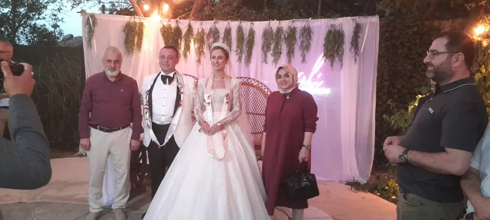 Düğünde Doktor Ali Çolak ve eşi Neriman Çolak, dünürleri Yücel ve Yasemin Bodur çiftiyle birlikte davetlilerle yakından ilgilendi. İki saatten fazla süren takı törenin ardından düğünün ilk danışını gelin ve damat yaptı.