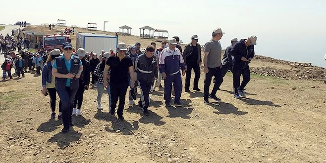Vali Aziz Yıldırım ve beraberindekiler, Ganos parkurunda gerçekleştirilen yürüyüş sırasında Yamaç Paraşütü Atlama Alanı`nda mola vererek manzarayı seyretti.