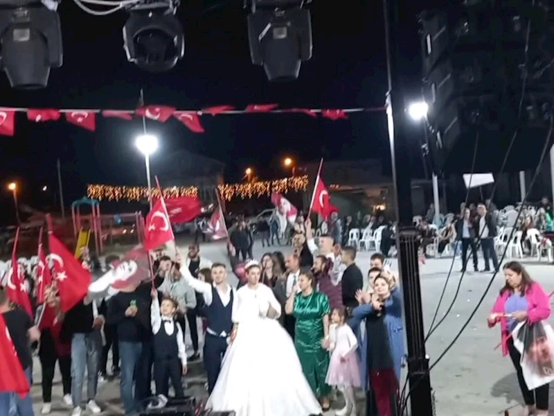 Edirne’nin Havsa ilçesine bağlı Naipyusuf köyünde evlenen Yonca - Doğanay Eren çifti, takı töreni öncesi 100. Yıl Marşı, sarı saçlım mavi gözlüm şarkılarını eşliğinde eğlendi.