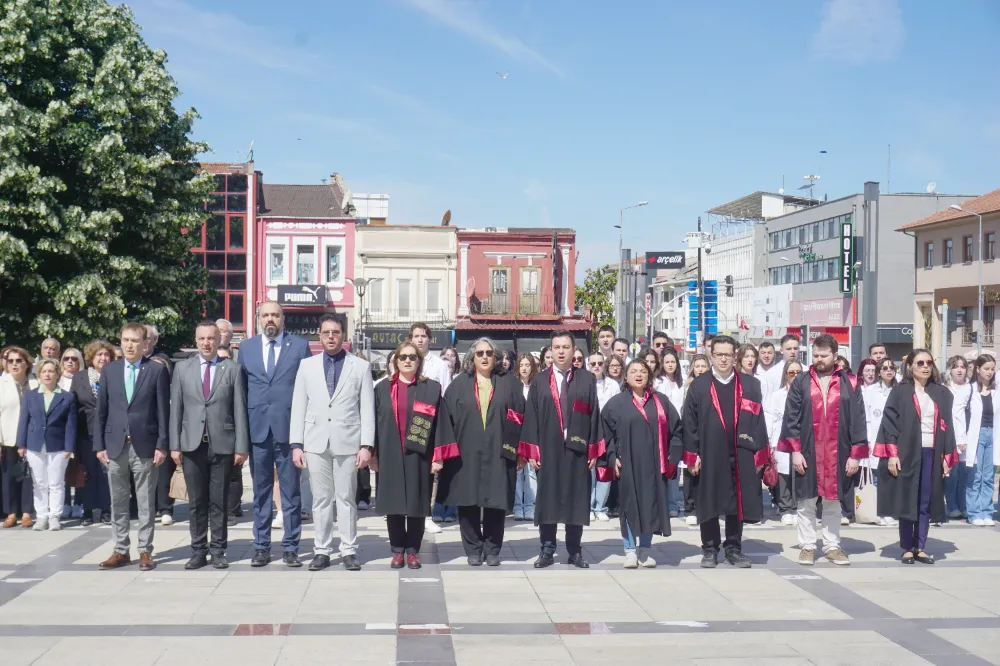 Edirne’de bilimsel eczacılığın 185. yılı ve Eczacılık Günü dolayısıyla Atatürk Heykeli önünde tören düzenlendi. Programda çelenk sunumunun ardından bando eşliğinde saygı duruşunda bulunuldu ve İstiklal Marşı okundu.