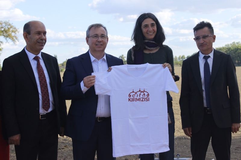 Trakya Üniversitesi Rektörü Prof. Dr. Erhan Tabakoğlu da konuşmasında, Edirne Kırmızısı ile ilgili bilgilerin yer aldığı kitabın Fransızca yazılı halde Amerika’da bir kütüphane olduğunu tespit ettiklerini söyledi. Kitabın getirilmesinin ardından yaptıkları incelemede bu rengin 1400’lü, 1500’lü yıllarda Edirne Saray’ında kullanıldığına dair bilgileri elde ettiklerini anlatan Tabakoğlu, hatta bu renge elde edebilmek için casusluk faaliyetlerinin de yürütüldüğüne dair yazıların olduğunu ifade etti. Hemen çalışmalara başladıklarını söyleyen Tabakoğlu, kendilerine destek veren Kiğılı firmasıyla birlikte beraber çalışmalara imza attıklarını vurguladı.