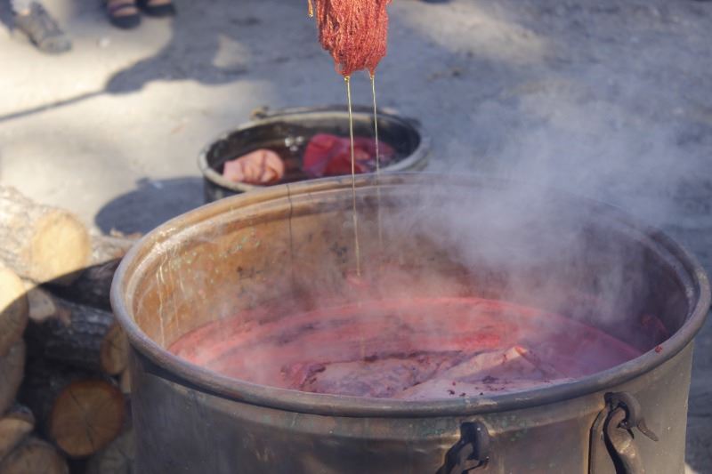 Padişah fermanıyla formülü asırlar önce yasaklanan ve efsane renge ulaşmak için casuslukların bile yapıldığı “Edirne Kırmızısı”nın rengini aldığı bitkide hasat yapılmasının ardından, kazanlarda kaynatılan kıyafetler yıllar sonra kıyafetlerle buluştu.