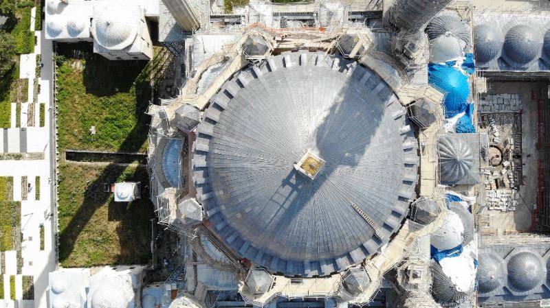 1989 yılında en son kubbe kurşunları ve kısmi restorasyon çalışmaları sonrası en büyük restorasyon olduğu vurgulayan Saraç, “Kubbelerin onarım çalışmaları ve kurşun kaplama imalatlarını tamamlandık. Cami ama kubbe, avlu kubbeleri ve beden duvarlarında kalem işi araştırma raspaları tamamlanmıştır. Bulunan yeni veriler ışığında kalem işi uygulama projelerinin hazırlık çalışmaları devam etmektedir. Caminin dış cephesinde taş temizliği, taş onarımları ve plastik onarım çalışmalarımız devam etmektedir” diye konuştu.