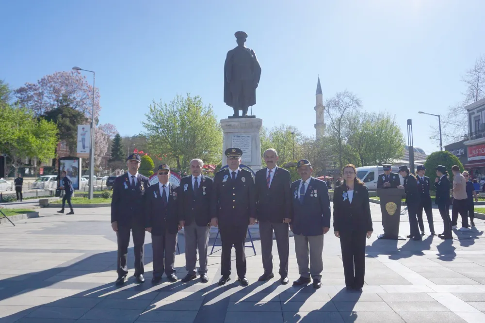 Türk Polis Teşkilatının 179. kuruluş yıl dönümü dolayısıyla Atatürk Anıtı önünde tören düzenlendi. Edirne Emniyet Müdürü Onur Karaburun ve Türkiye Polis Emeklileri Sosyal Yardım Derneği Edirne Şube Başkanı Ali Bilgin anıta çelenk sundu. Çelenk sunumunun ardından Belediye Bandosu eşliğinde saygı duruşunda bulunuldu ve İstiklal Marşı okundu. Günün anlam ve önemini belirten konuşmayı Emniyet Müdürü Onur Karaburun yaptı.