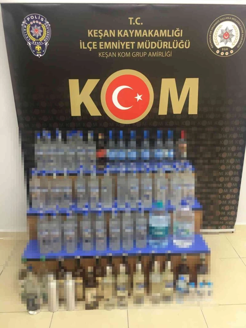 Edirne’nin Keşan ilçesinde polis ekipleri tarafından gümrük kaçağı içki satışı yapan şahıslara yönelik düzenlenen operasyonda 81 adet içki ele geçirildi.