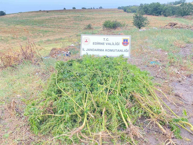 EDİRNE’DE AYÇİÇEĞİ TARLASINDA 450 KÖK KENEVİR BİTKİSİ ELE GEÇİRİLDİ