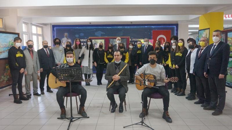 Öğrenciler yaptığı resimlerden bir tanesini Vali Canalp’a hediye etti.