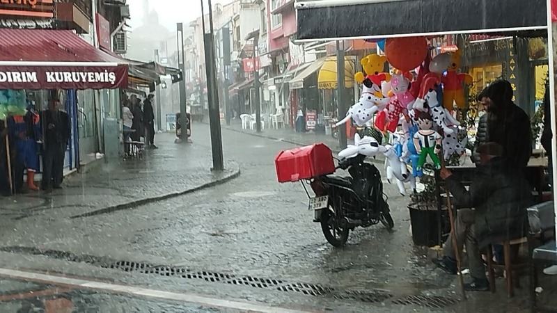 Meteoroloji Genel Müdürlüğü, Trakya ve Çanakkale bölgesi için gök gürültülü yağış uyarısının ardından Edirne’de sağanak yağış etkili oldu. Edirne’de sabah saatlerinde etkisini hissettiren sağanak sebebiyle cadde ve sokaklarda su birikintileri meydana geldi. Şehir merkezinde ve bazı ilçelerde etkili olan sağanak yağmur ve dolu yağışı hayatı olumsuz etkiledi. Vatandaşlar kendilerini yanlarına aldıkları şemsiyelerle yağmurdan korumaya çalıştı. Hava sıcaklığının 14 derece ölçüldüğü şehirde yağışların belli aralıklarla devem edeceği belirtildi. Şehir trafiğinde de sürücüler ilerlemekte güçlük yaşadı. Sağanak yağış bir yandan da çiftçilerin yüzünü güldürdü.