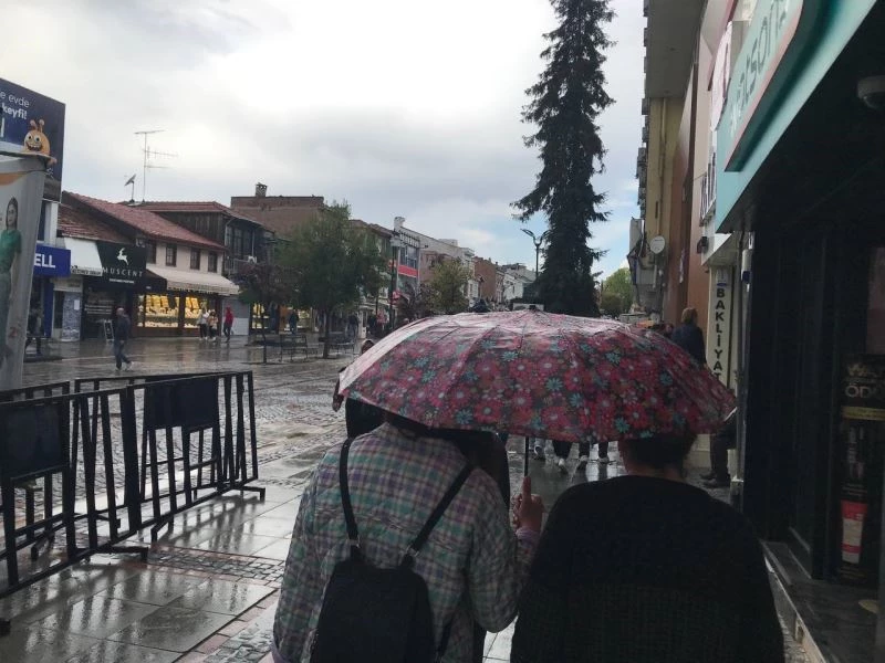 Edirne’de, öğle saatlerinden sonra aniden bastıran sağanak yağış, şehir genelinde etkili oldu. Edirne merkezde de etkili etkisini gösteren yağış hayatı olumsuz etkilerken, yağmura hazırlıksız yakalanan vatandaşlar ise zor anlar yaşadı. Yollarda ve caddelerde oluşan su birikintileri sürücülere zor anlar yaşattı. Sağanak yağış sebebiyle yağmura hazırlıksız yakalanan vatandaşlar ıslanmamak için sığınacak yer ararken, tedbir alarak şemsiyeleriyle dışarı çıkan vatandaşlar ise ıslanmaktan kurtuldu. Yağmurdan kaçarak saçak altılarında bekleyen vatandaşlar ise yağmurun dinmesini bekledi.