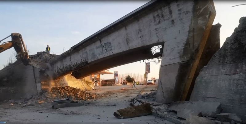 Edirne'de yapılan çalışmalar çerçevesinde Tunca Köprüsü 5 gün geçici olarak araç ve yaya trafiğine kapatılırken, şehir merkezindeki üst geçit de ekipler tarafından iş makinesi yardımıyla yıkıldı. Hızlı tren için çalışmalarını sürdüren ekipler, çevrede geniş güvenlik önlemi aldı. Üst geçidin yıkımı kontrollü şekilde gerçekleştirilirken, yıkım haberini duyarak koşan vatandaşlar, çıkan demirleri alabilmek için birbiriyle yarıştı.