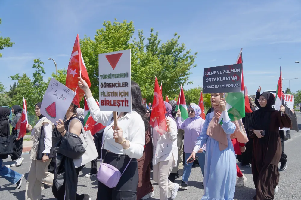 Edirne’de İsrail’in Gazze’ye yönelik saldırılarını protesto etmek amacıyla bir araya gelen Trakya Üniversitesi öğrencileri, sloganlar eşliğinde yürüyüş gerçekleştirdi.