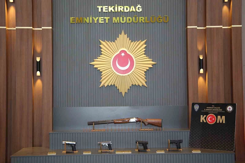Tekirdağ’da düzenlenen operasyonda çok sayıda silah ele geçirildi. Tekirdağ İl Emniyet Müdürlüğü Kaçakçılık ve Organize Suçlarla Mücadele Şube Müdürlüğü görevlilerince silah ticareti suçu çerçevesinde operasyon düzenlendi. 10 şahsa yönelik olarak yapılan çalışmalar neticesinde, 4 adet ruhsatsız tabanca, 1 adet av tüfeği, 25 AK-47 Mermisi, 270 adet tabanca mermisi ele geçirildi.