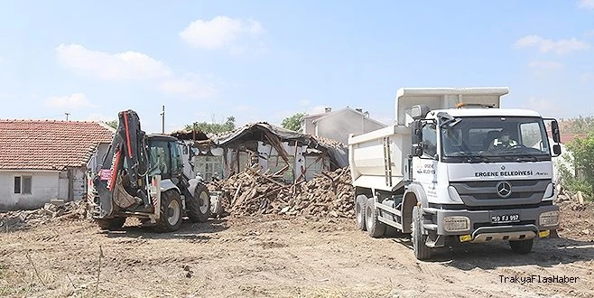 Ergene Belediyesi tarafından can güvenliğini tehdit eden metruk binaların yıkımı devam ediyor.