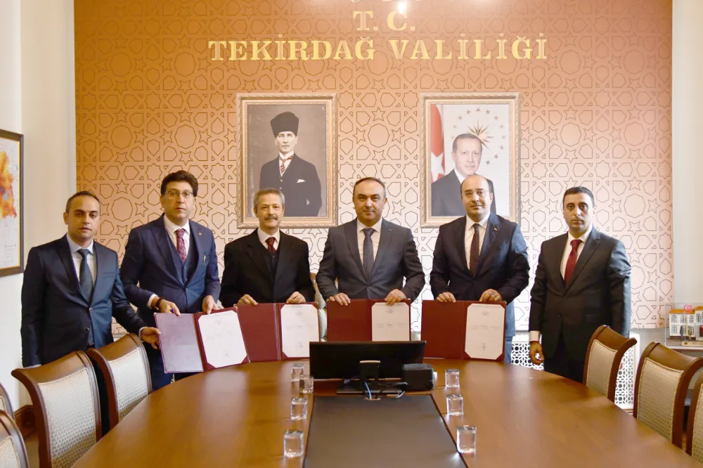 Anaokulların yaptırılmasına dair protokol; Tekirdağ Valisi Recep Soytürk, Ergene Kaymakamı Kadir Duman, İl Milli Eğitim Müdürü Ersan Ulusan, Çevre, Şehircilik ve İklim Değişikliği İl Müdürü Kaan Sinan Tohumcu ve Hayırsever Durmuş Aksu tarafından Tekirdağ Valiliği Toplantı Salonu’nda imzaladı.