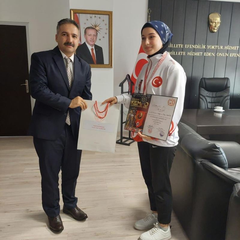 Avrupa Şampiyonası’nda 60 kiloda üst genç büyükler kategorisinde ikbal Öztürk Avrupa şampiyonluğu kazanırken, alt genç kategorisinde ise Nisanur El Avrupa üçüncüsü oldu. Avrupa şampiyonu olan İkbal Öztürk ile Avrupa üçüncüsü Nisanur El, Ergene Kaymakamı Mehmet Emin Taşçı’yı antrenörleri Gökhan Beydeş ve Ergene Gençlik ve Spor Müdürü Şenol Doğramacı ile birlikte makamında ziyaret ederek başarılarını paylaştı.