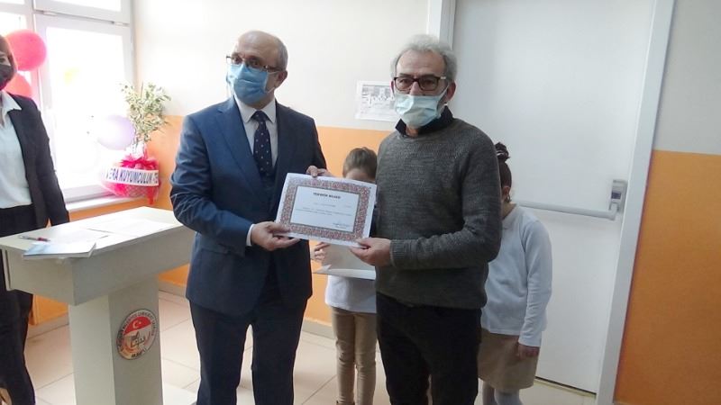 Hayırsever Safiye Temizel, eşi Hamdi Temizel’in ikinci ölüm yıldönümünde kütüphanenin açılışını gerçekleştirmenin mutluluğunu yaşadığını dile getirdi. 4 bin 73 adet kitabın bulunduğu kütüphanede; satranç masaları ve çeşitli bilimsel dergilerin yanı sıra; öğretmenler ve veliler için de bir köşenin yer aldığı gözlemlendi. Hayırsever Safiye Temizel’e, öğretmen Meral Şenel’e, ağabeyi Murat Şenel’e ve Aslan Özdemir’e teşekkür belgesi takdim edildi. Hayırsever Safiye Temizel’e ayrıca plaket de verildi.