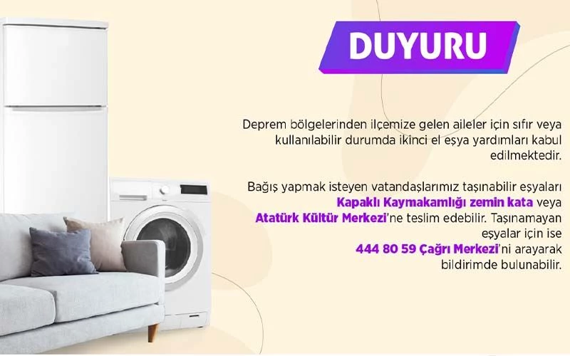 Kahraman merkezli gerçekleşen ve 10 ili şiddetli biçimde etkileyen depremin ardından Kapaklı Kaymakamlığı yaraları sarmak için desteğini sürdürüyor. Afet bölgelerine ulaştırılmak üzere sıfır ve ikinci el ev eşyaları yardımında bulunmak isteyen vatandaşların, yardımlarını Kapaklı Kaymakamlığı zemin kata veya Atatürk Kültür Merkezi’ne teslim edebileceklerini duyuran Kapaklı Kaymakamlığı taşınamayan eşyalar için ise 440 80 59 çağrı merkezini arayarak bildiri yapılabileceğini açıkladı.