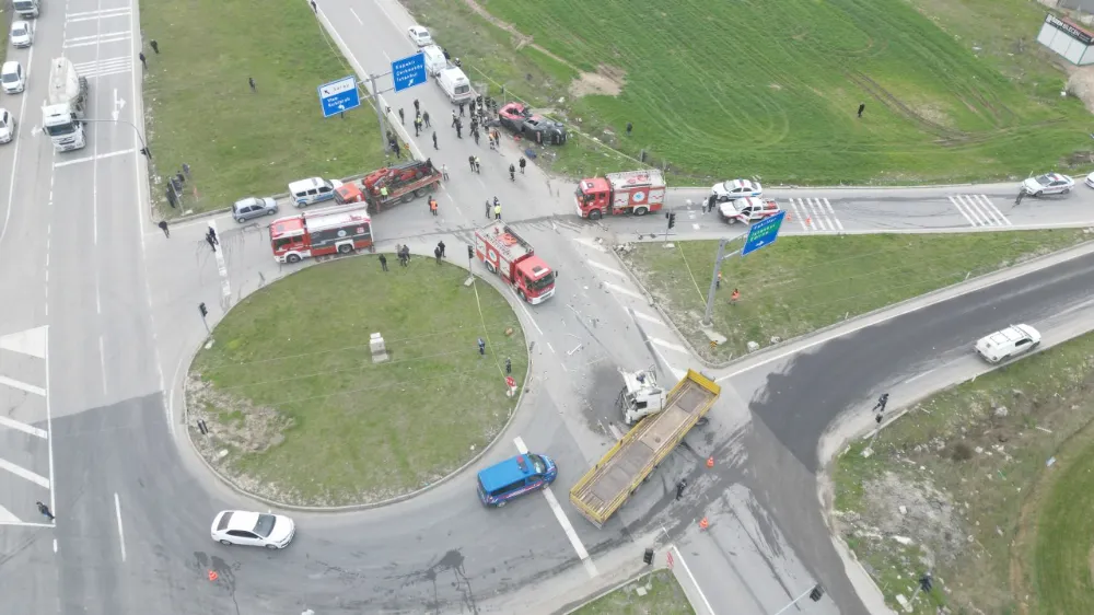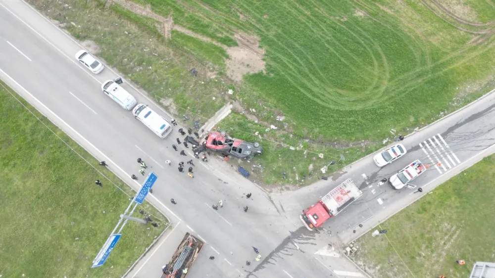 Tekirdağ’ın Saray ilçesinde, 5 kişinin öldüğü, 10 kişinin yaralandığı kaza havadan görüntülendi.