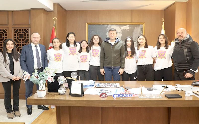 Türkiye Liseler Arası Basketbol Şampiyonası’nda finallere katılmaya hak kazanan Özel Çerkezköy Uğur Anadolu Lisesi Kız Basketbol Takımı Belediye Başkanı Vahap Akay’ı ziyaret etti.
