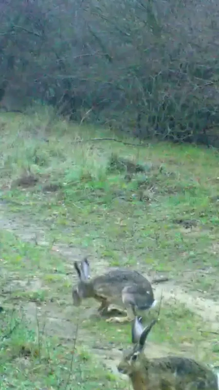 Edirne’de fotokapanlar, bu kez iki yaban tavşanını görüntüledi.