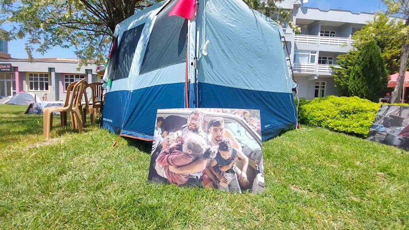 Tekirdağ’ın Süleymanpaşa ilçesinde üniversite öğrencileri İsrail’in saldırısı altındaki Gazze için çadırlı eylem başlattı.