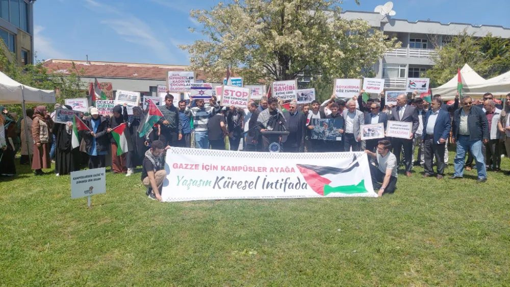 Alandaki grup adına bir açıklama yapan Hukuk Fakültesi Öğrencisi Baran Dursun, “Tarihteki tüm önemli dönüm noktalarında olduğu gibi bugün de Gazze’de, yıllardır süregelen ve 7 Ekim’den beri had safhaya ulaşan katliam ve direniş, doğruyu yanlıştan, haklıyı zalimden, izzeti zilletten ayırt eden bir örnek olarak karşımızda duruyor. İşgalci İsrail, Filistin’de sadece bir halkı değil, aynı zamanda insani tüm ilke ve değerleri sistematik bir şekilde katlediyor. Batılı devletler ise bu katliama göz yummanın da ötesinde, insan hakları ihlallerinde sınır tanımayan İsrail’i açıktan desteklemeye devam ediyor. Zulümle, hasta, yaşlı, kadın, çocuk demeden insanları, hayvanları ve tabiatı katlederek abad olacağını zanneden İsrail’i soykırım silahlarıyla teçhiz eden ABD ve diğer batılı ülkeler, Gazze’deki zulmün bizatihi faili konumunda olmayı sürdürüyor” dedi.