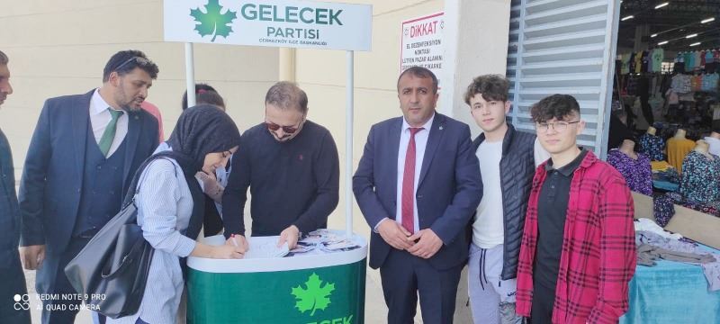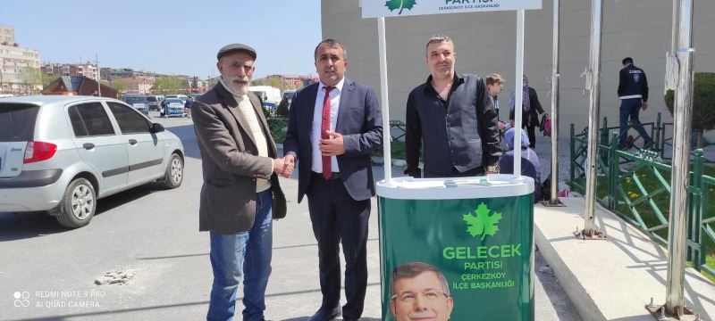 Partisine ilginin her geçen gün arttığını söyleyen Veysel Karakoç, “Bugün Çerkezköy Halk Pazarımızda, üye kaydı gerçekleştirdik ve partimizin programını, projelerini anlatan broşürlerimizi vatandaşlarımızla, esnafımızla paylaştık. Yönetim kurulu arkadaşlarımız ve teşkilat üyelerimizle birlikte Gelecek Partisi’ne gönül veren vatandaşlarımızın üye kayıtlarını yaptık. Gelecek Partisi’ne Çerkezköy’de ilgi her geçen gün artıyor. Üye sayımız beklentilerimizin üzerinde artıyor. Böyle sürmesini temenni ediyorum.”diye konuştu.