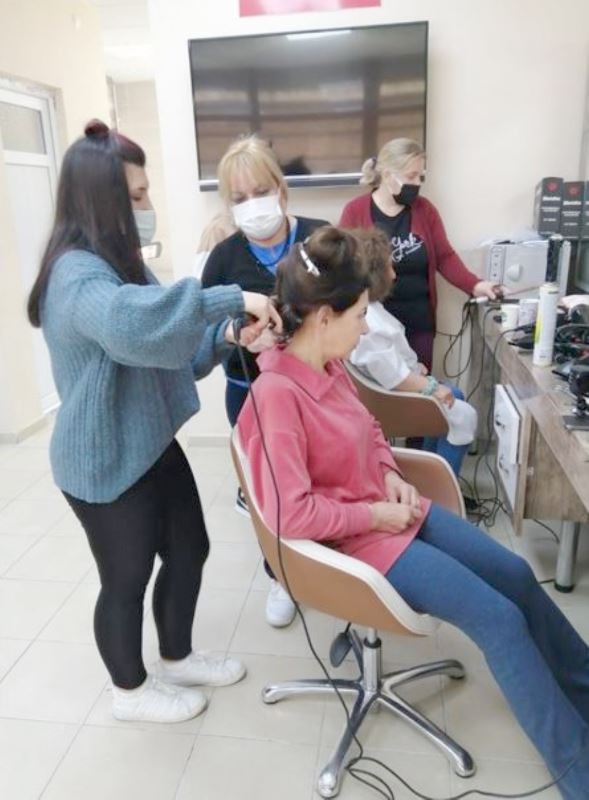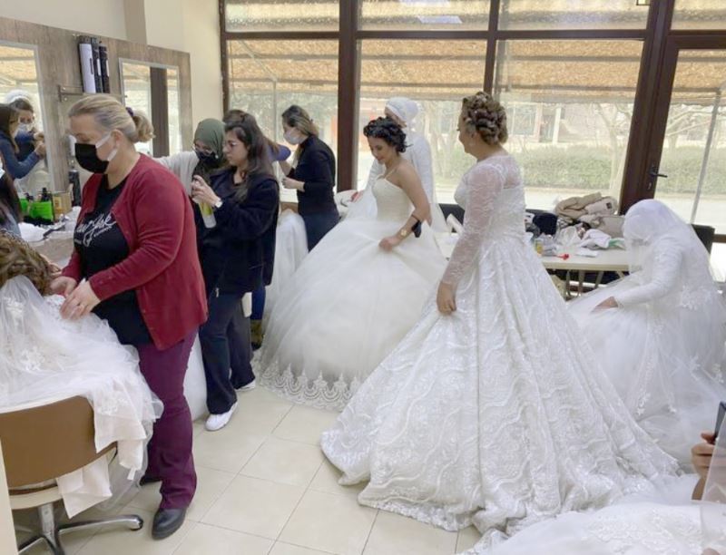 Evlenecek olan gelinlerin saç ve makyajları Ergene Belediyesi Kursiyerleri tarafından yapıldı.