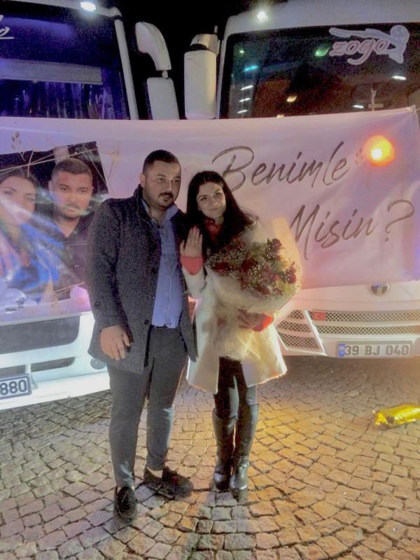Kırklareli’nin Lüleburgaz ilçesinde servis taşımacılığı işi yapan vatandaş, sevdiği kadına servis araçları eşliğinde görülmemiş bir evlenme teklif etti. Evlilik teklifi karşısında sevdiği kadın, genç adama 'Evet' cevabı verirken, ortaya renkli görüntüler çıktı.