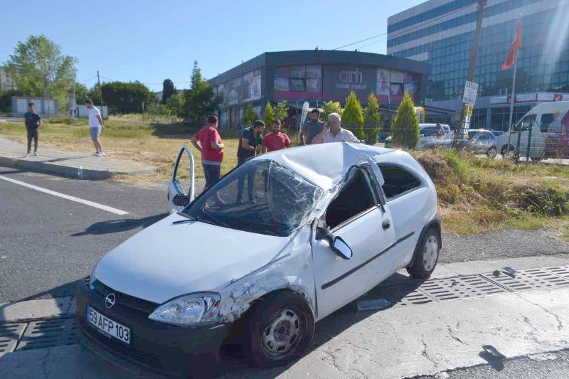 Tekirdağ Çorlu’da hastaneye hasta götüren araca arkadan çarpan otomobil takla attı. 2 kişinin yaralandığı kaza anı ise kameraya yansıdı.