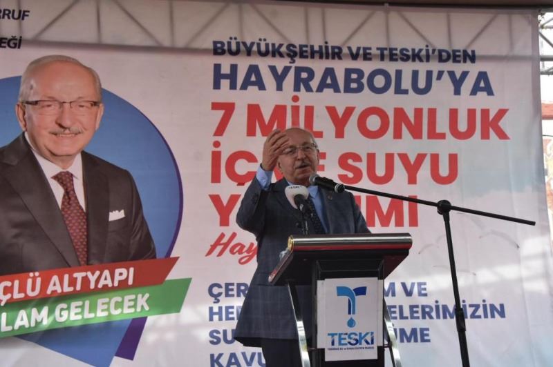 “Hayrabolu ilçemizin Çerkezmüsellim ve Hedeyli mahallelerinin içme suyu ihtiyacını karşılayacak projemizin temelini atıyoruz. Proje kapsamında Çerkezmüsellim Mahallemizde 1 adet 50 metreküplük içme suyu deposu ve 1 adet terfi merkezi yapacağız. Ayrıca iletim hattının kurulumunu yaparak yaklaşık 50 abonenin bulunduğu bölgeye hizmet götüreceğiz. Ayrıca Hedeyli Mahallemizde yaşayan vatandaşlarımızın içme suyu ihtiyacının karşılanabilmesi amacıyla Kadriye Mahallemizde bulunan depoda 1 adet terfi merkezi oluşturacağız. 4.992 metre uzunluğunda 9 cm çaplı HDPE borularla içme suyunu sağlıklı bir şekilde Hedeyli Mahallemize getireceğiz. Yaklaşık maliyeti 7 milyon TL olan projeyi en kısa sürede tamamlayarak hizmete sunmayı planlıyoruz. Bu duygu ve düşüncelerle, projemizin hayırlı olmasını diliyor, bu hizmetimizde emeği geçen herkese teşekkür ediyorum.”