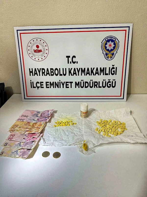 Hayrabolu İlçe Emniyet Müdürlüğü ekipleri tarafından uyuşturucu ticaretinin engellenmesine yönelik çalışmalar aralıksız sürüyor. Yapılan çalışmalar sonucunda, İlyas Mahallesi’nde rutin devriye görevini yapan polis ekipleri, durumundan şüphelendikleri bir motosikleti durdurdu. Şüphelilerin üst aramasında, 135 uyuşturucu hap ve uyuşturucu satışından elde edildiği değerlendirilen 582 lira ele geçirildi.