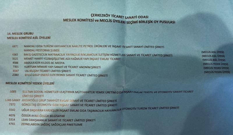 Havadis adlı seçimde Mavi Liste’den aday olan BC Medya’nın yayım organı gazetede yazanların aksine, Çerkezköy TSO Meclis Toplantısı basın ve gazetecilere açık halde gerçekleştirildi. Sonuna kadar gazetecilerin takip edebildiği meclis toplantısı Sarı Liste’nin zaferiyle sonuçlanan seçimde meclise giren 43 Meclis üyesinin de ilk meclis toplantısıydı. Daha öncesinde ise meclis üyeleri sadece organ seçimi için bir araya gelmişti. Geçen hafta yapılan organ seçimlerinde Sarı Liste’nin Başkan Adayı olan Ahmet Çetin, ekibinden 28 kişi kendi meslek komitelerinden seçilerek meclise girmesine rağmen 37 meclis üyesinin oyunu alarak ÇTSO Yönetim Kurulu Başkanı seçilmişti. Ahmet Çetin, bu seçimin ardından ilk meclis toplantısına katılırken, rakip listeden bir adayın gazetesinde atılan başlık, etik olmadı. Kaldı ki, Ahmet Çetin Başkanlığı’ndaki ÇTSO’nun yeni dönemine, yüzde 80 değişim ve genç bir meclis ile girildi.