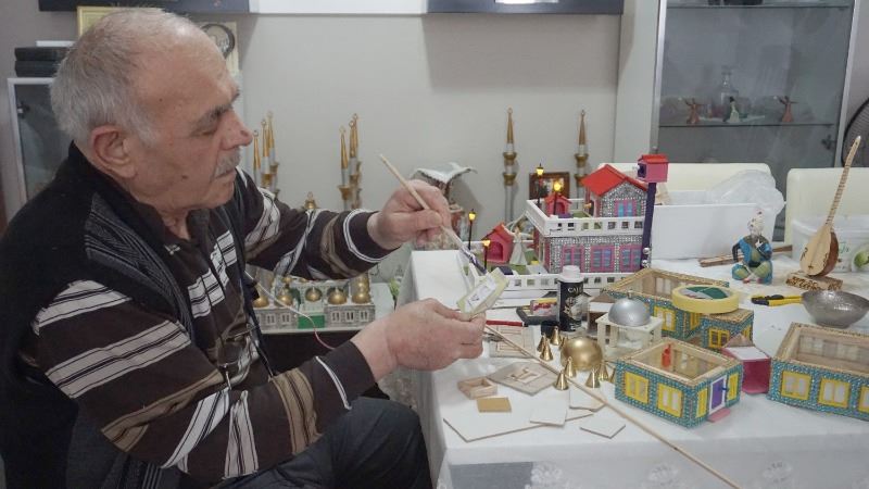 Edirne’de yıllar önce kolon kanserine yakalanan 82 yaşındaki Veysel Balcı, hastalığını unutmak ve oyalanmak için başladığı maket cami ve ev yapım işinde kısa sürede usta oldu.