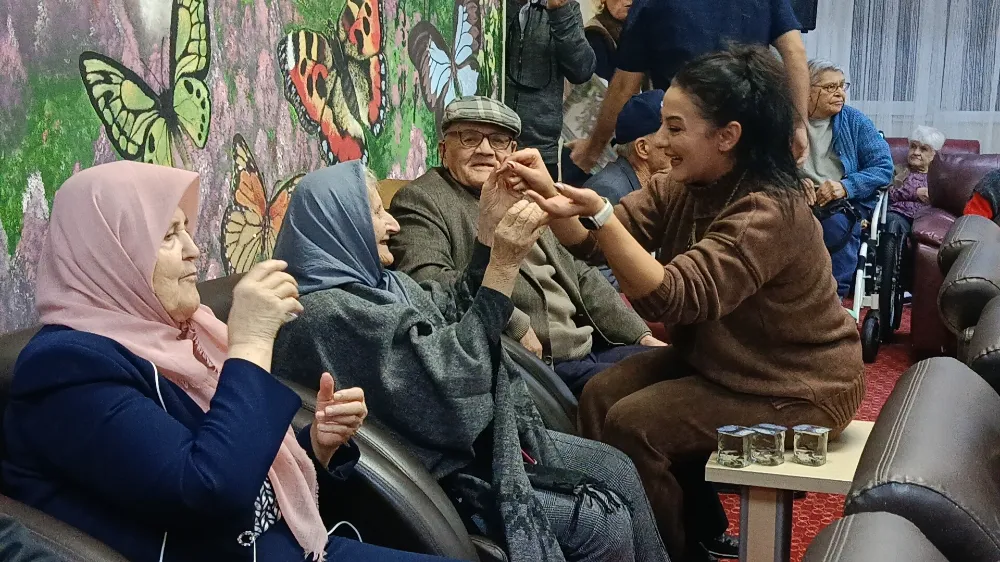 Yaşlılar, kurum müdürleri ve huzurevi personeli beraber türküler söyleyip oyun havaları eşliğinde keyifli bir akşam geçirdiler.