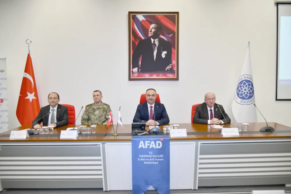 Tekirdağ Namık Kemal Üniversitesinde yapılan toplantıya Vali Soytürk’ün yanı sıra Tekirdağ Büyükşehir Belediye Başkanı Kadir Albayrak, 8.Mekanize Piyade Tugay Komutan V. Piyade Binbaşı Serbay Güven, Vali Yardımcıları, Kaymakamlar, İl Emniyet Müdürü Mehmet Hakan Fındık, İl Jandarma Komutanı J. Alb. Ahmet Çetin, Afet ve Acil Durum İl Müdürü Tezcan Buçan ve kurum müdürleri katıldı.
