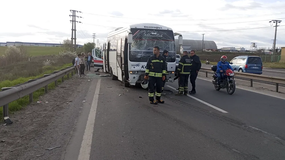 Tekirdağ’ın Ergene ilçesinde meydana gelen kazada tekstil fabrikasına işçi taşıyan servis minibüsü askeri personel taşıyan servis aracına çarptı. Kazada toplamda 16 kişi yaralandı.