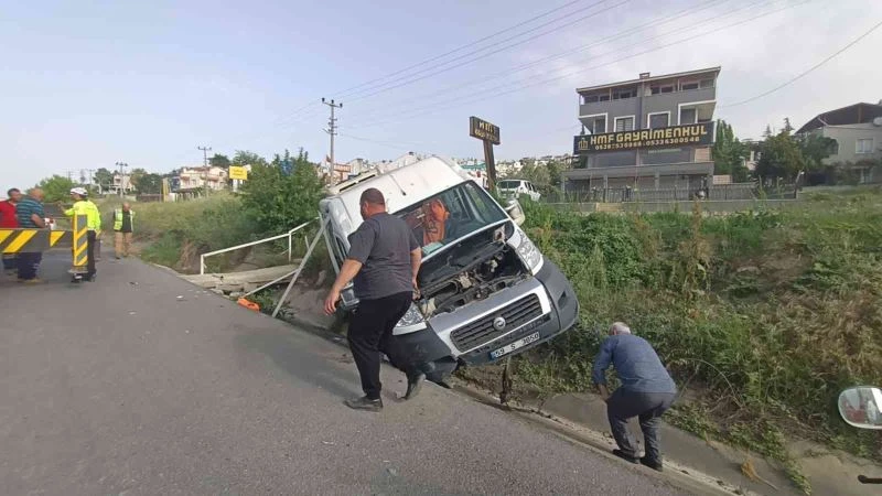 Tekirdağ’ın Marmaraereğlisi ilçesinde işçileri taşıyan Y.A.’nın yönetimindeki 59 S 3050 plakalı minibüs, sürücüsünün direksiyon hâkimiyetini kaybetmesiyle Dereağzı Mahallesi’nde sulama kanalına devrildi. Kaza sonucu araçta bulunan işçilerden A.T, E.G, E.Ç, M.Y, E.Ç. ve K.B ile sürücü Y.A yaralandı. Yaralılar sağlık ekiplerinin ilk müdahalesinin ardından Marmaraereğlisi Devlet Hastanesi’ne kaldırılırken, kazanın kesin oluş nedeninin tespiti için soruşturma başlatıldı.