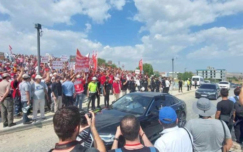 İşçiler eylem yaptıkları sırada Tekirdağ Büyükşehir Belediyesi’nin binasının açılışına gelen Kılıçdaroğlu’nun aracı işçilerin olduğu alandan hızla ilerleyerek uzaklaştı.