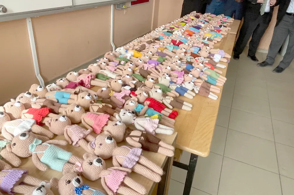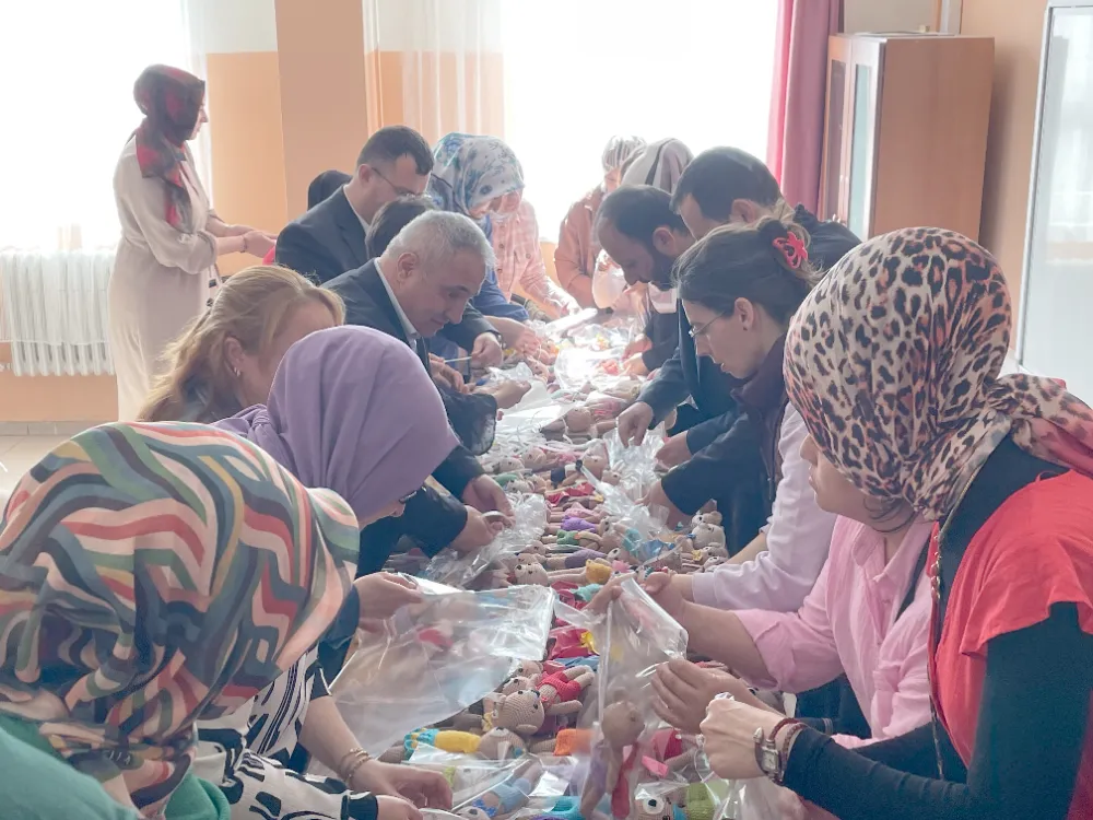 Tekirdağ Kapaklı Gazi İlkokulu tarafından düzenlenen “Bayram Hediyen Bizden” projesi kapsamında Hatay İskenderun’daki depremzede ilkokul öğrencilerine 180 adet el işi örme oyuncak hediye edildi.