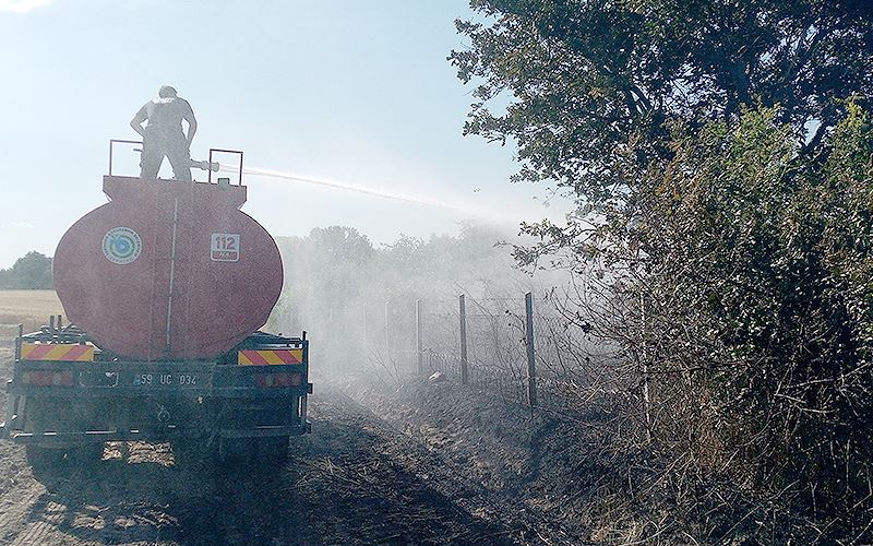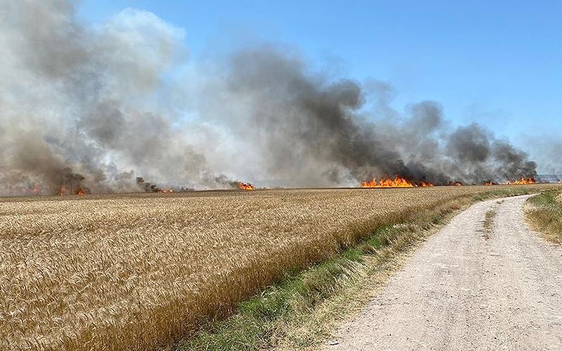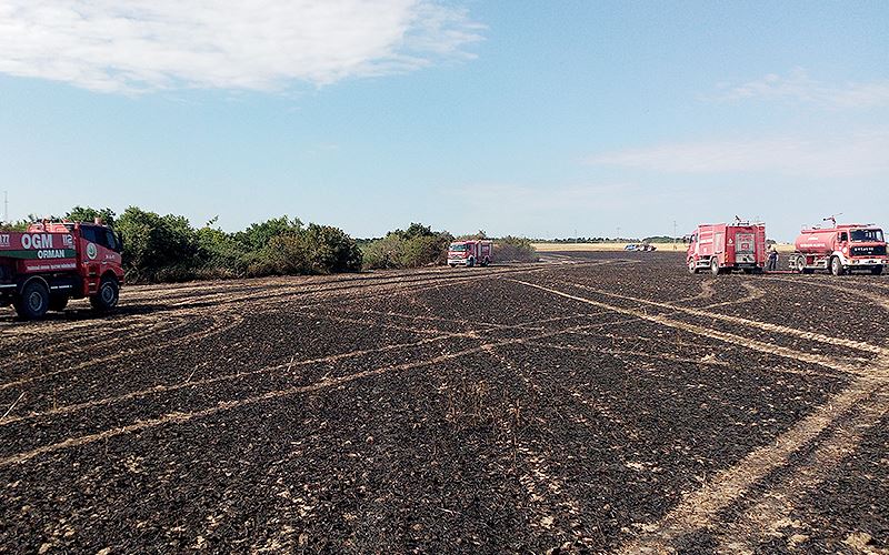 Tekirdağ’ın Çorlu ilçesi ile İstanbul’un Silivri ilçesi sınırlarında çıkan yangın rüzgarın da etkisiyle 15 dakikada 500 dönüm biçilmemiş buğdayı küle çevirdi. Yangın, İstanbul ve Tekirdağ itfaiyelerinin ortak çalışması sonucu daha da büyümeden kontrol altına alındı.